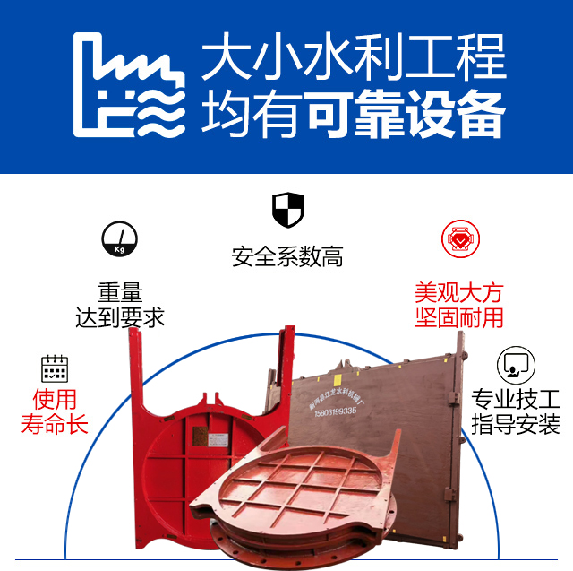 直升式平面滑動(dòng) 主要由閘框、閘板、吊座及緊閉斜鐵等零部件組成。為克服以往鋼門(mén)易銹蝕的缺點(diǎn),閘框、閘板全采用鑄鐵組成,其中閘框又由上橫梁、下橫梁、左直梁、右直梁組成。為了制造、運(yùn)輸、安裝方便,閘板一般根據(jù)其大小或高度情況由上下幾部分拼裝組成。 閘門(mén)按閘板形狀的不同,分為PZ平板和PGZ拱形兩大類(lèi)。具體選用可根據(jù)閘孔尺寸、承壓水頭、啟閉型式、閘門(mén)自重等方面加以綜合比較確定。
